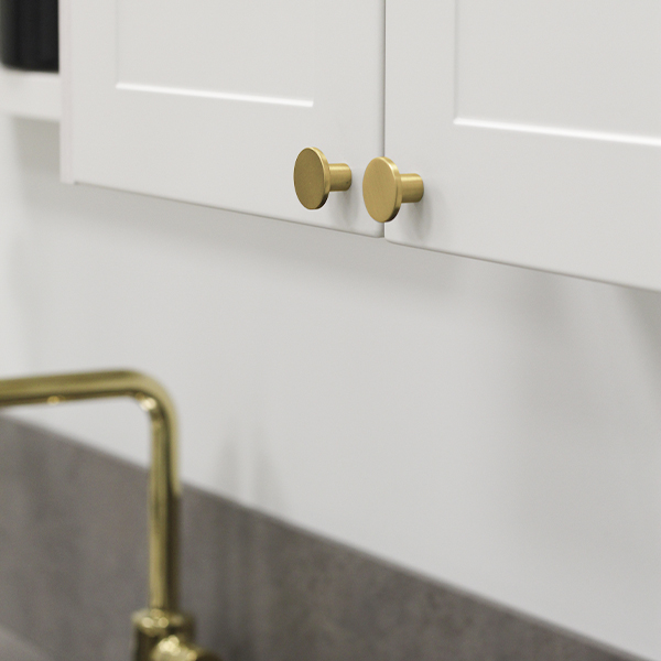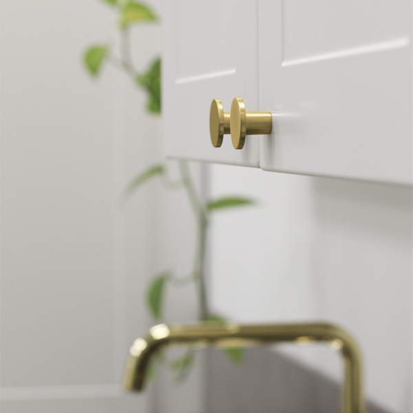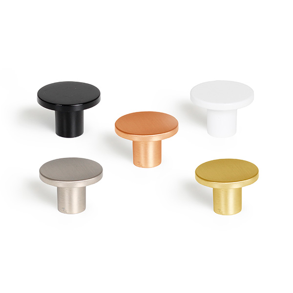 Näyttävä, selkeälinjainen nuppi. Uutuussävy harjattu messinki. Nupin Ø26, korkeus 18mm.