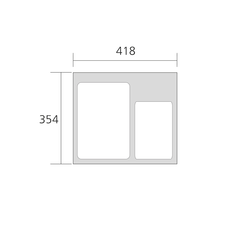 418(L)x354(S)x295(K)mm. Soveltuu hyvin myös korkean
