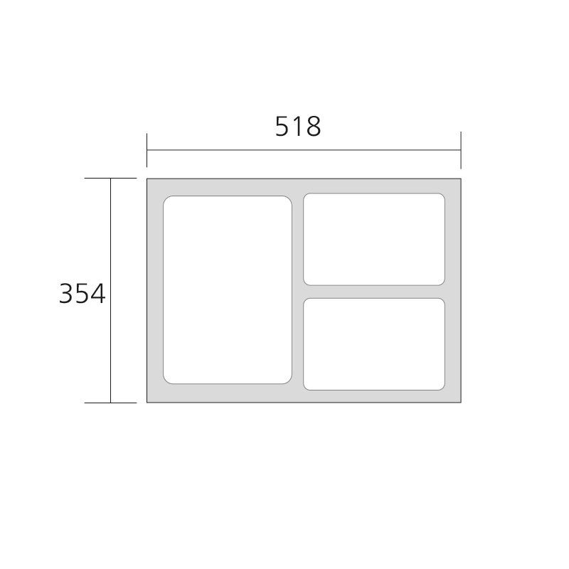 518(L)x354(S)x295(K)mm. Soveltuu hyvin myös korkean