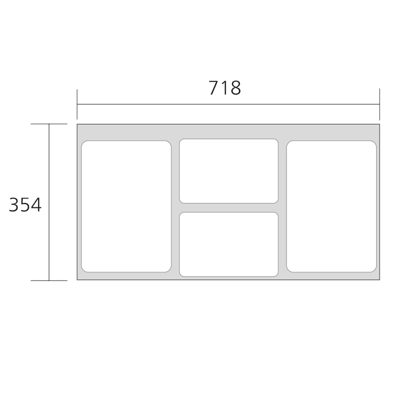718(L)x354(S)x295(K)mm. Soveltuu hyvin myös korkean