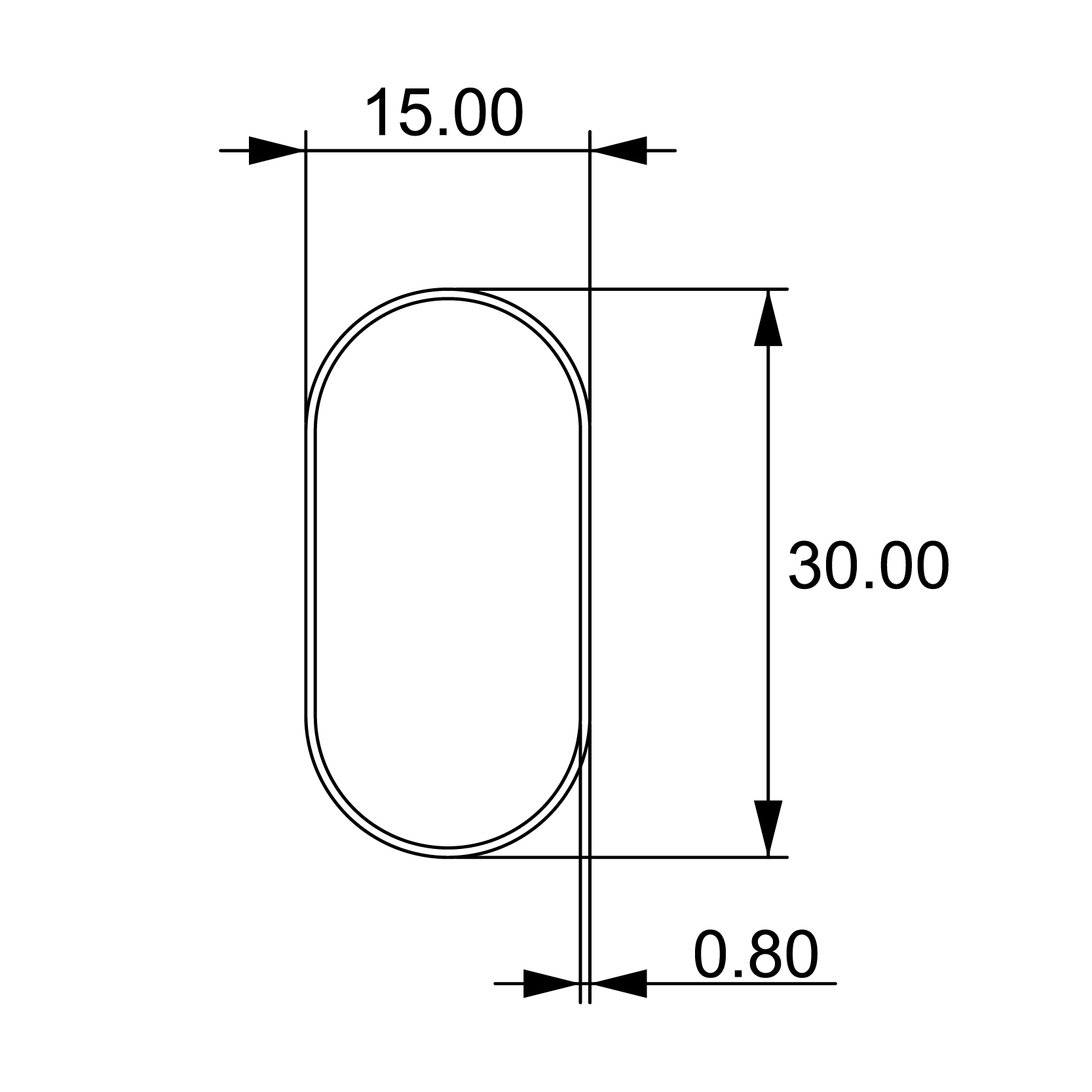 Määrämittainen kromattu ovaaliputki 15×30 mm. Putken pituus 761mm. Materiaalivahvuus 0,8 mm.