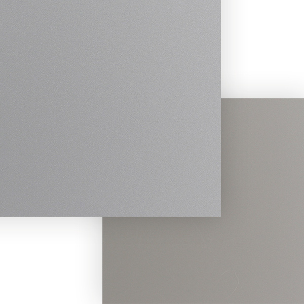 metalliharmaa ja toinen rusehtava greige (harmaa/beige).