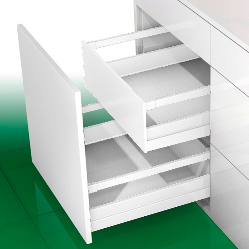 Grass NP Scala ja One sisälaatikon mukaanottaja, avaa sisälaatikon yhtä aikaa korkean laatikon kanssa. Väri valkoinen. Vapautus nappia painamalla. Sopii 8 mm paksulle sisälaatikon etusarjalle. Pakkauksessa mukana asennusruuvit.