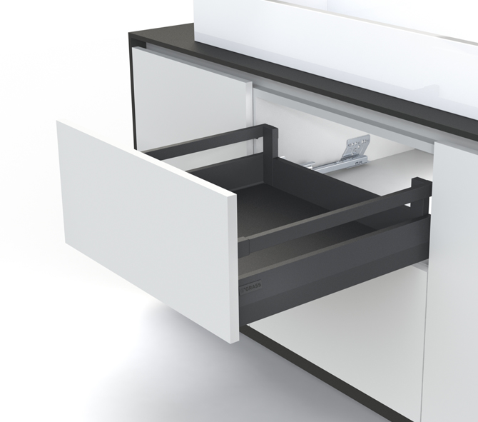Grass Nova Pro One -laatikon 90 mm korkea vasen sivu, pituus 650mm. Grass Nova Pro One on modernisti muotoiltu, Nova Pro kiskon päälle rakennettava laatikko, jonka käyttömukavuus j a säilytystila on maksimoitu. Väri Valkoinen. Pakkauskoko 20 kpl/ltk.