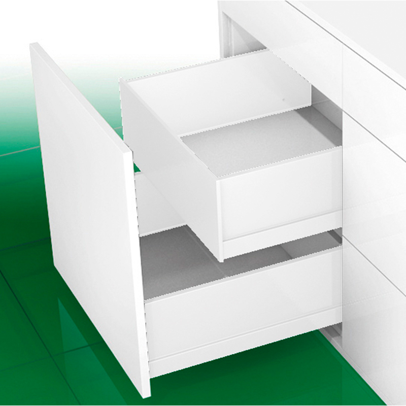 Grass NP Scala ja One sisälaatikon mukaanottaja, avaa sisälaatikon yhtä aikaa korkean laatikon kanssa. Väri valkoinen. Vapautus nappia painamalla. Sopii 8 mm paksulle sisälaatikon etusarjalle. Pakkauksessa mukana asennusruuvit.