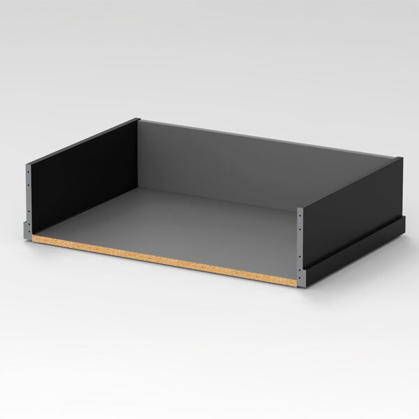 Valmiiksi kasattu, pahvilaatikkoon pakattu stonen sävyinen, Grass Scala H186/500 laatikko leveydessä M70. Paketissa myös 40kg kiskot sekä etusarjakiinnikkeet laajenevalla käpytapilla.