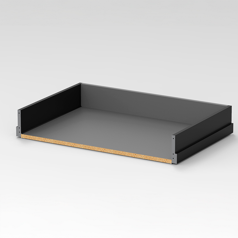 Valmiiksi kasattu, pahvilaatikkoon pakattu stonen sävyinen, Grass Scala H90/500 laatikko leveydessä M70. Paketissa myös 40kg kiskot sekä etusarjakiinnikkeet laajenevalla käpytapilla.