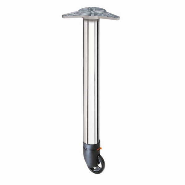 Pöydänjalka 710 mm pyörällä, kromattu. Ø 60 mm. Mahdollista lukita niin ettei pyörä käänny eikä pyöri. Myydään yksittäin. Ei lyhennettävissä, pyöräosan kiinnitys samoin kuin laipan. Kantavuus 120kg.
