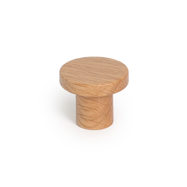 Pyöreä puunuppi Lex lakattua valkotammea. Nupin halkaisija 33mm, syvyys 28mm, jalkaosa Ø18mm. Muhvi M4 vedinruuvin kierteelle.