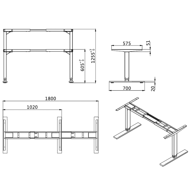 SÄHKÖSÄÄDETTÄVÄ TOIMISTOPÖYDÄN RUNKO KAHDELLA JALALLA,