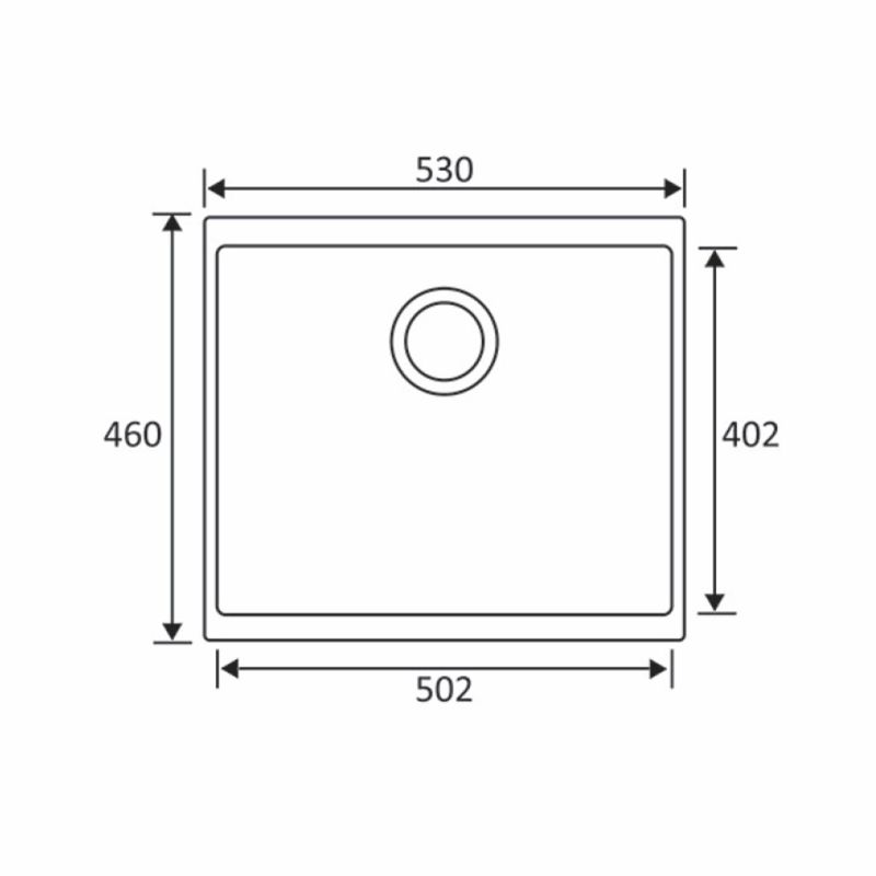 Ulkomitat 530x460x200, allas 502x402mm. Tilaustuote n. 7pv