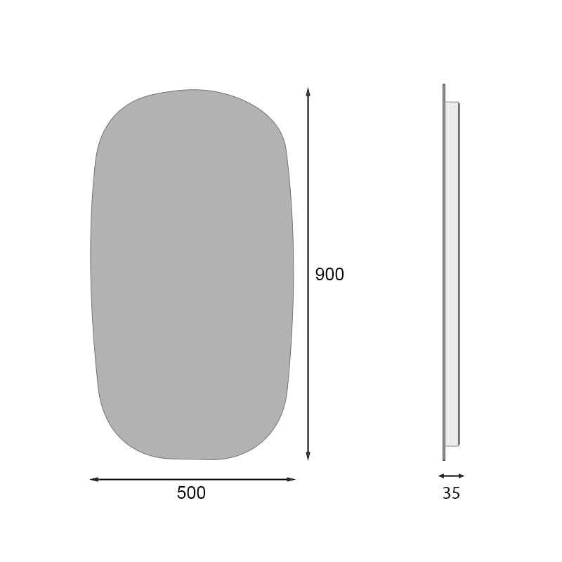 mitoitus on 500x900mm, korkeus seinästä 35mm. Takana