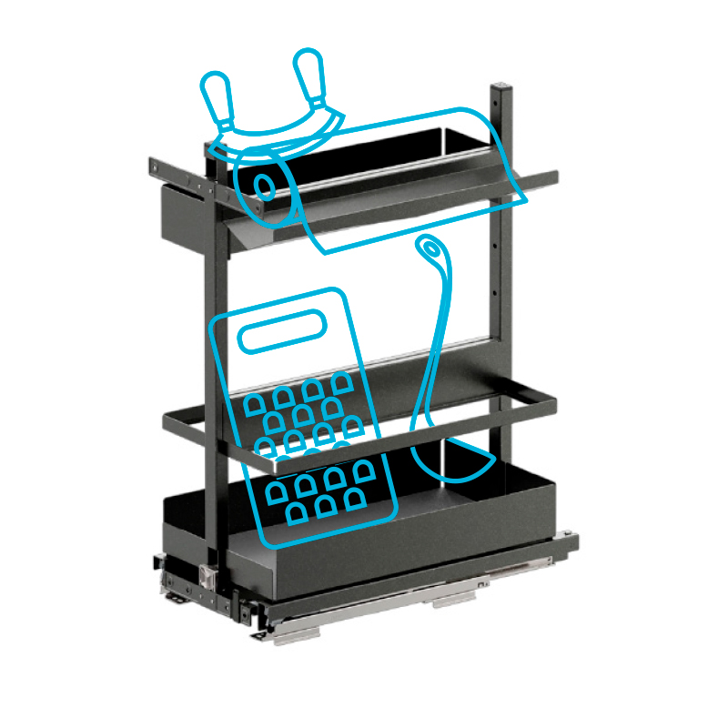 leikkuulaudoille. Mukana teline talouspaperirullaa varten.